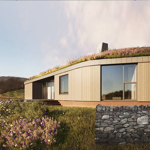 Set on the slopes above Glen Lyon, the gently angled geometry and planted roof of the house will allow it to merge with the hillside when viewed from below.